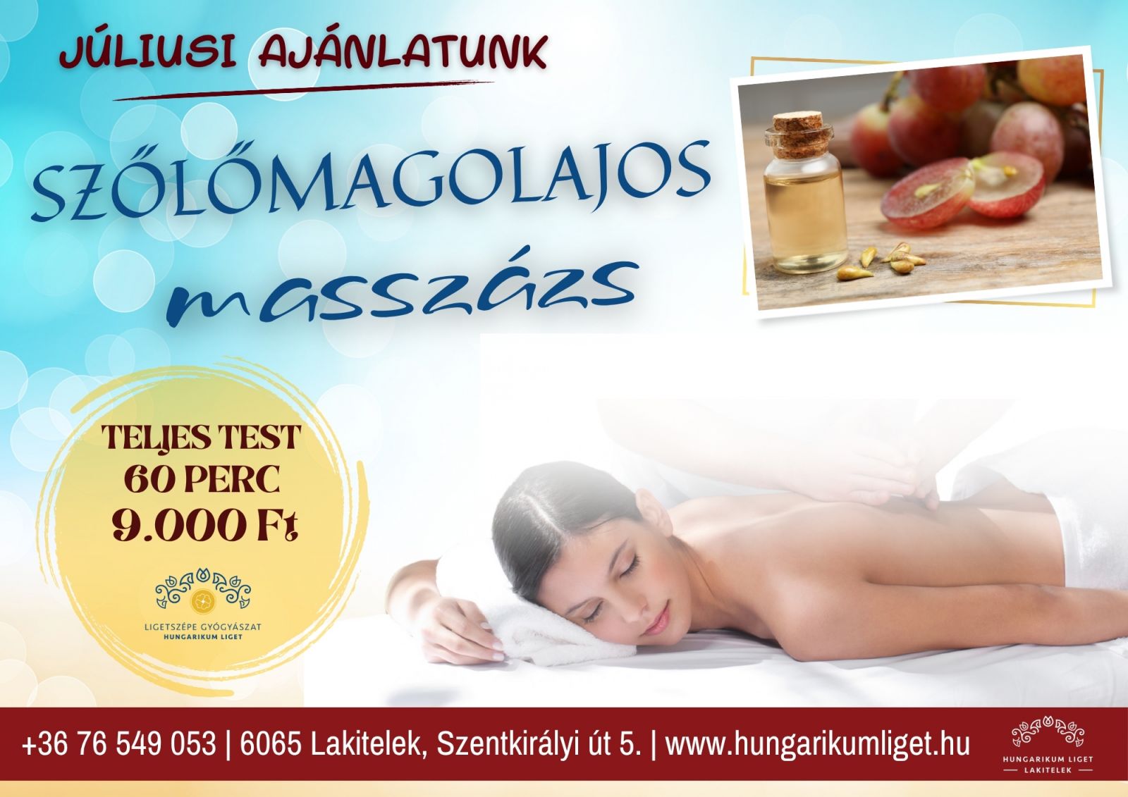 Júliusi ajánlatunk – Szőlőmagolajos teljes testmasszázs