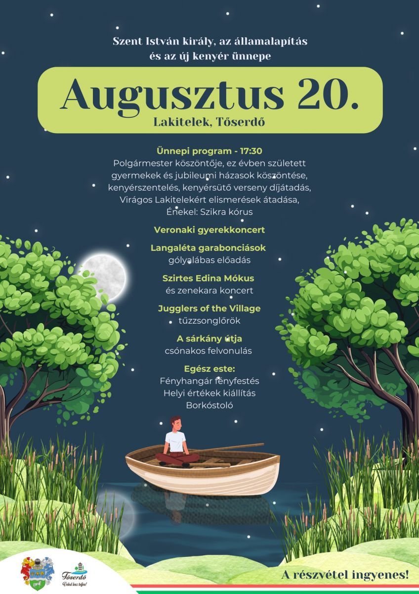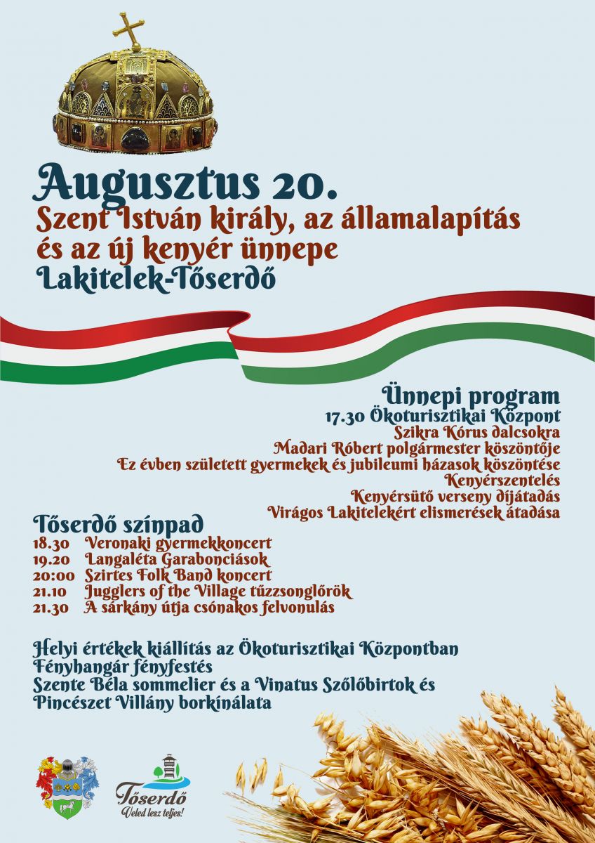 Augusztus 20-án, a hagyományok tiszteletére a programok mellett megrendezésre kerül a Tőserdő Ökoturisztikai Központjában az ünnepi kenyérsütő verseny. Hozza el saját, házilag készült kenyerét, és mérettesse meg a helyi mesterek előtt!