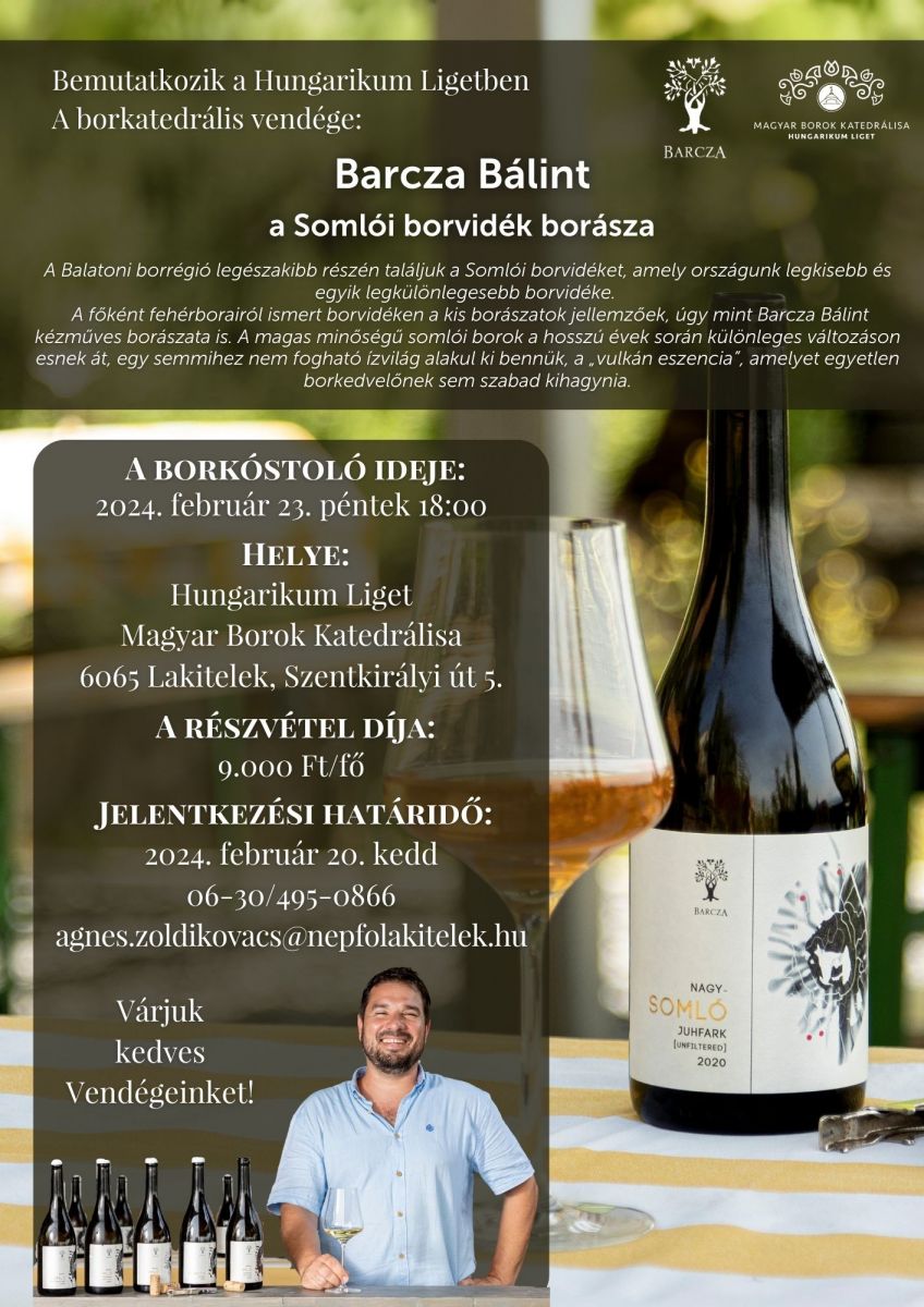 Bemutatkozik a Hungarikum Liget Magyar Borok Katedrálisában Barzca Bálint a Somlói borvidék borásza 2024. február 23-án.