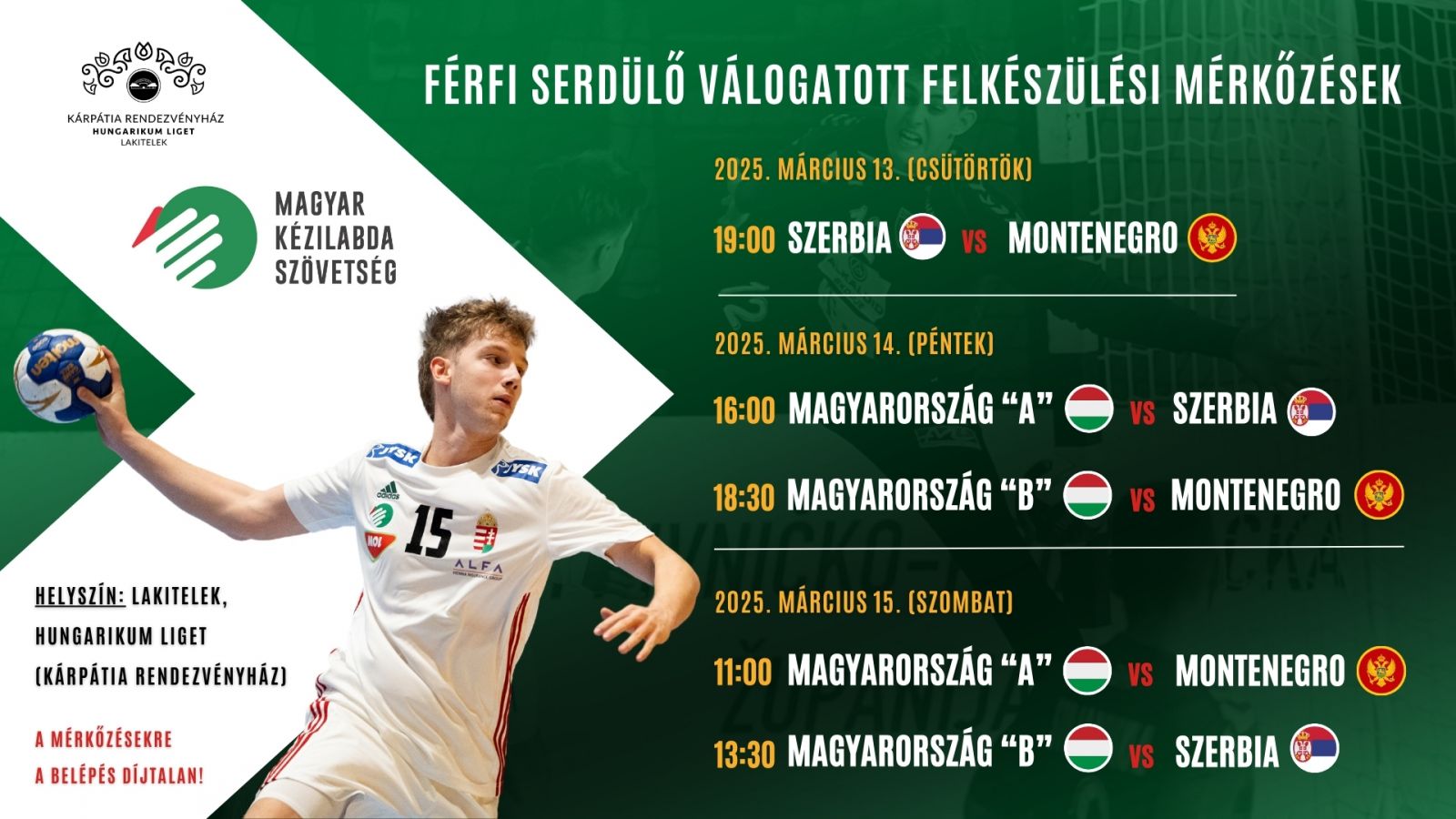 🔹 Március 15. – Magyarország „A” vs. Montenegró | Magyarország „B” vs. Szerbia