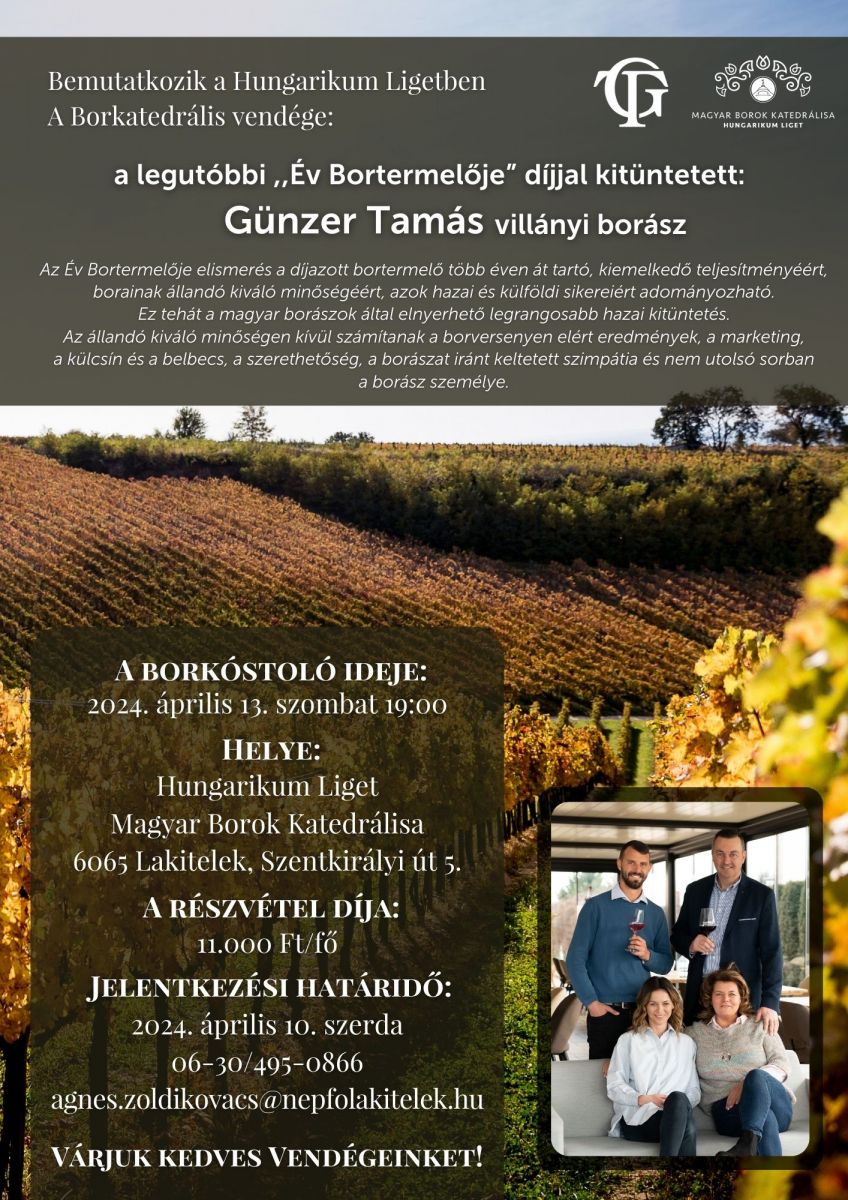 Április 13-án Günzer Tamás borestje a Magyar Borok Katedrálisában!