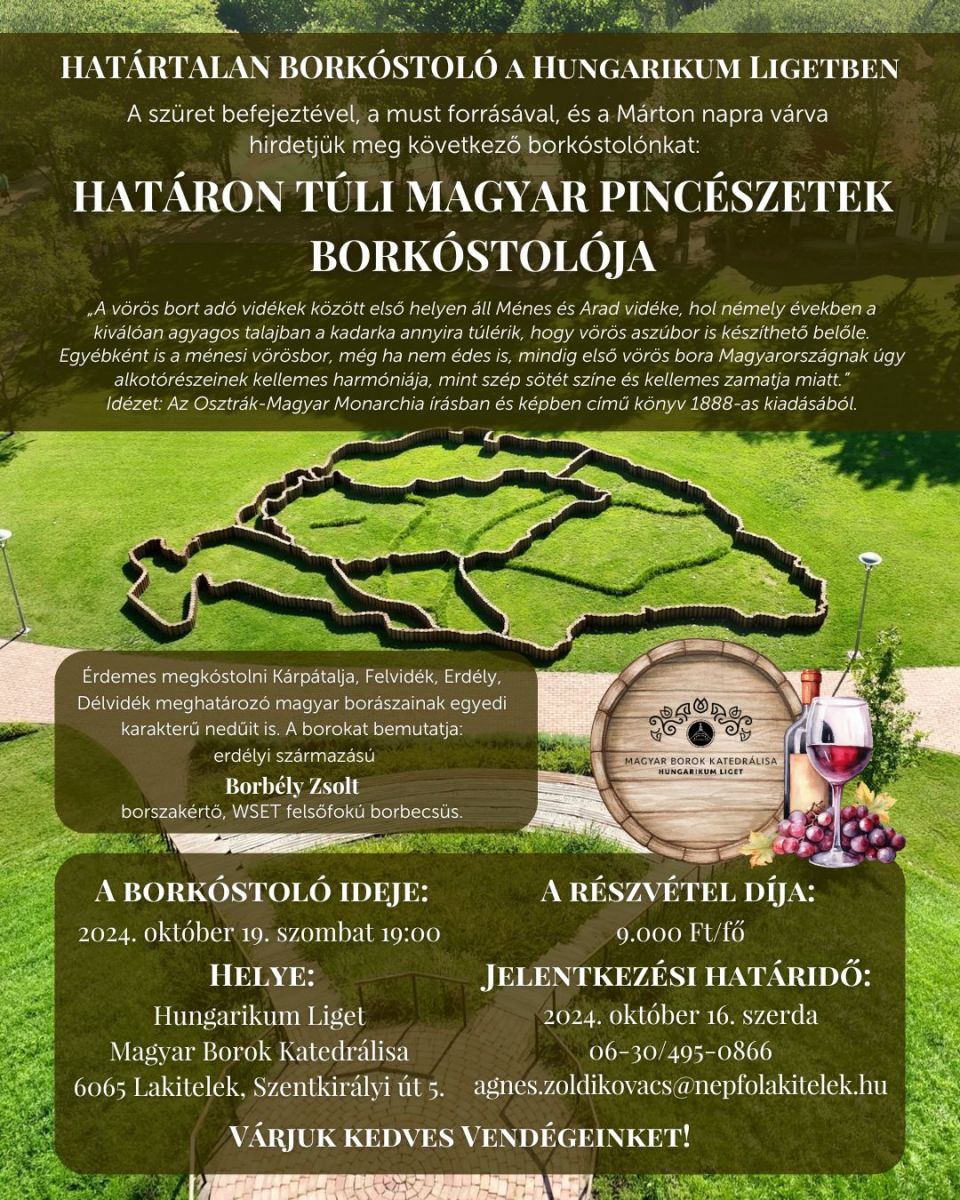 Csatlakozzon hozzánk egy emlékezetes borkóstoló élményére, ahol a határon túli magyar borászatok legkiválóbb borait kóstolhatja meg.