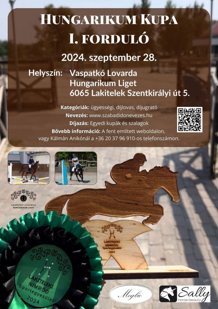 2024. szeptember 28-án egy különleges eseményre kerül sor a Vaspatkó Lovardában Lakiteleken! A Hungarikum Kupa első fordulójára várjuk a lovassportok szerelmeseit és mindenkit, aki egy izgalmas, versenyekkel teli napot szeretne eltölteni. A verseny helyszíne, a Hungarikum Liget, gyönyörően parkosított területével ideális környezetet biztosít a rendezvény és az érdeklődők számára.
