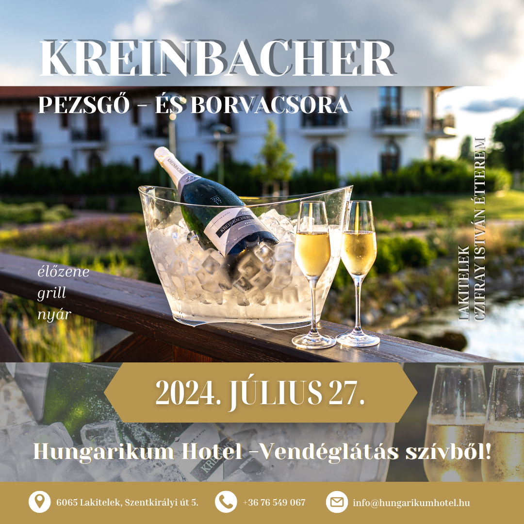 Szeretettel invitáljuk egy különleges esetére a Kreinbacher pincészet kiváló termékeivel, ínycsiklandozó ételekkel és élőzenével!