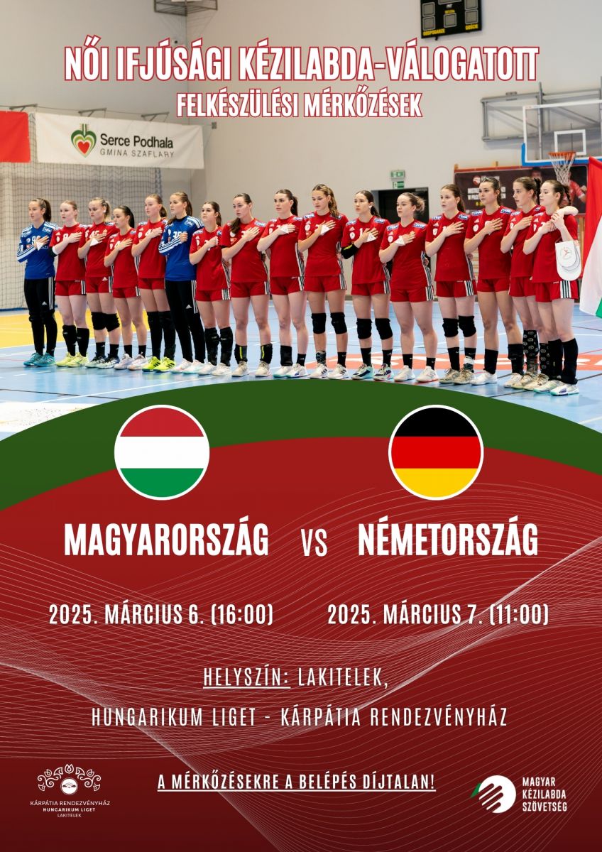 Örömmel értesítjük vendégeinket, hogy 2025. március 6-án és 7-én a magyar női ifjúsági kézilabda-válogatott felkészülési mérkőzéseit Lakiteleken, a Hungarikum Liget – Kárpátia Rendezvényházban rendezik meg.
