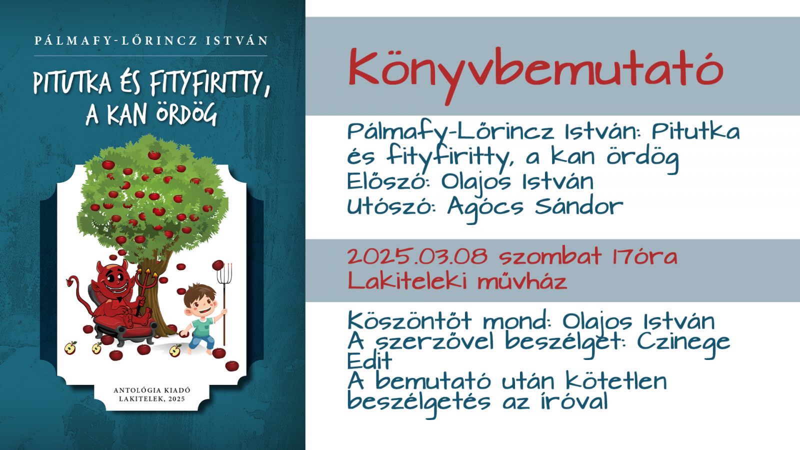 Szeretettel meghívjuk Önt Pálmafy-Lőrincz István legújabb könyvének bemutatójára! A szerző „Pitutka és fityfiritty, a kan ördög” című műve egy különleges és szórakoztató történet, amely garantáltan magával ragadja az olvasókat.
