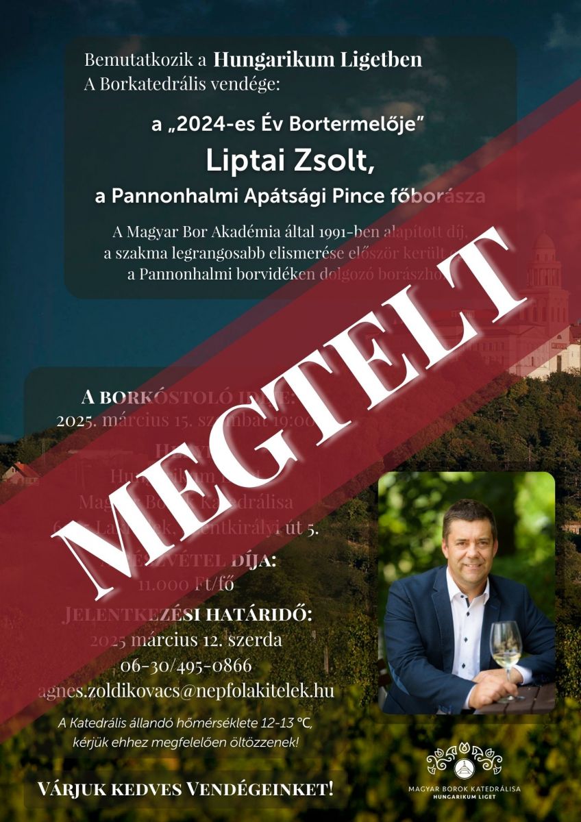 Szeretettel meghívjuk Önt egy felejthetetlen borkóstolóra a Hungarikum Ligetbe, ahol a Magyar Borakadémia által "2024-es Év Bortermelője" címmel kitüntetett Liptai Zsolt, a Pannonhalmi Apátsági Pince főborásza lesz a vendégünk.