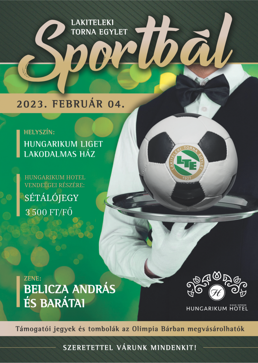 Február 4-én pedig a Hungarikum Liget Lakodalmas Házában kerül megrendezésre a Lakiteleki Torna Egylet Sportbálja, ahová vacsora után sétálójegy megváltásával lehetőségük nyílik kedves vendégeinknek is csatlakozni!