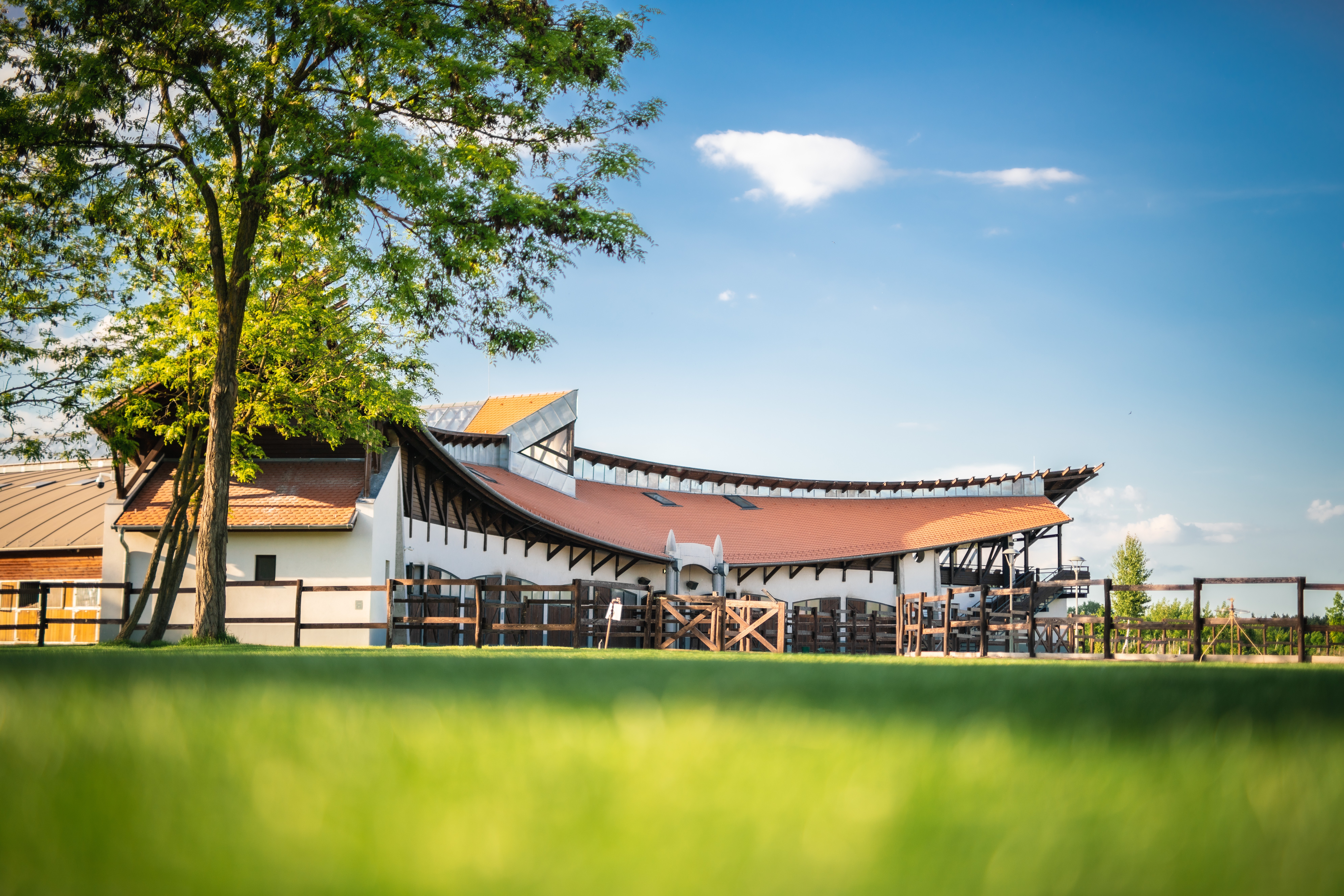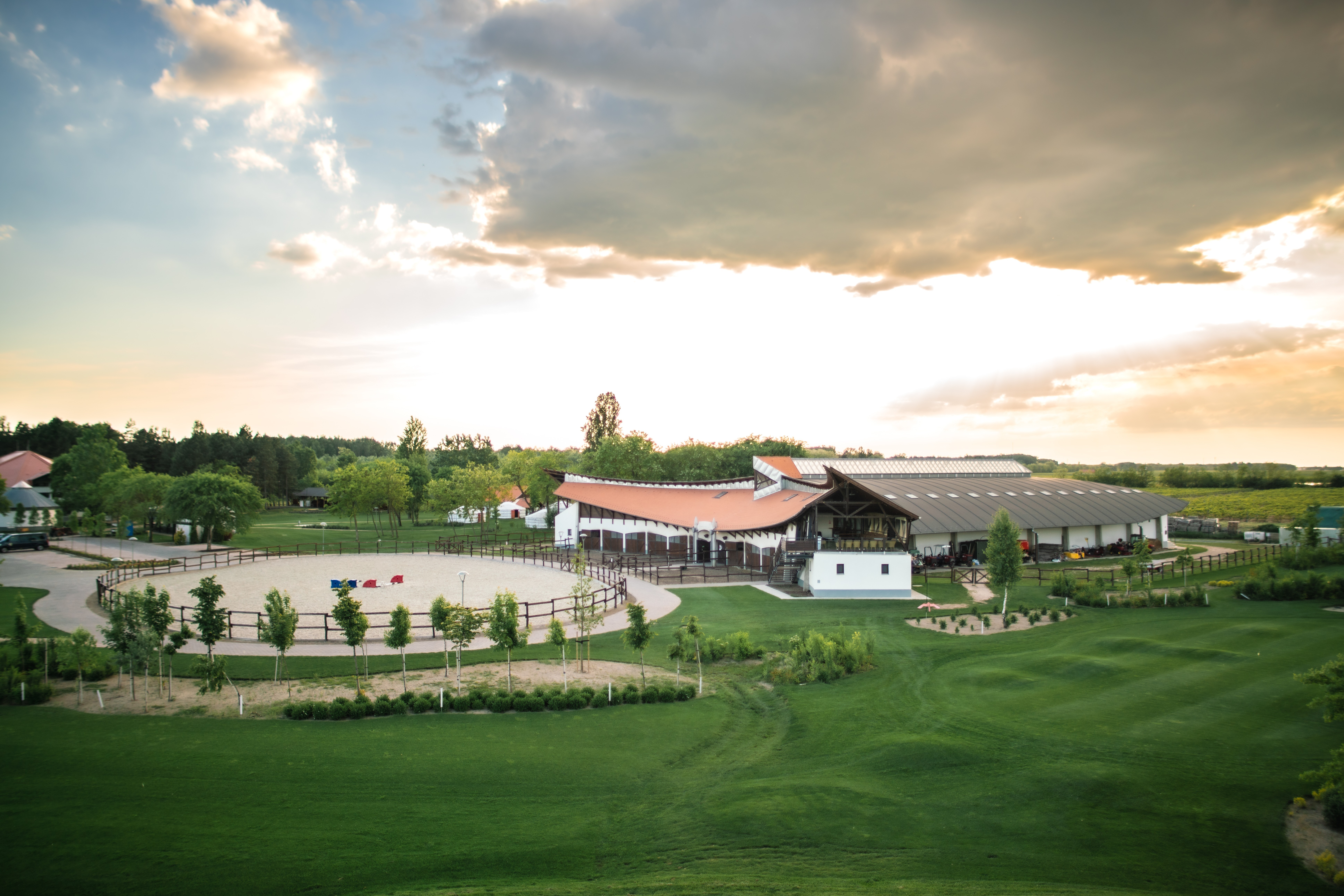 A fedeles gyakorlópályája mellett egy kültéri kifutó is kialakításra került, így időjárástól függetlenül várja a lovas sportot kedvelőket.